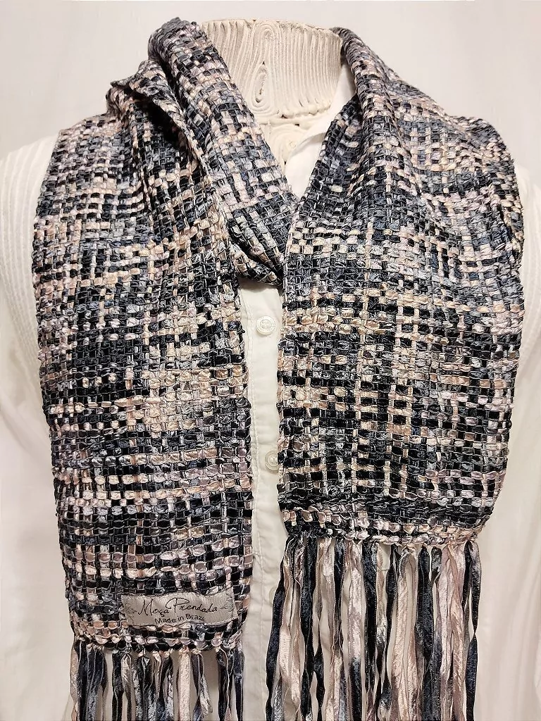 Cachecol trissé mesclado rosa e azul, Moça Prendada.